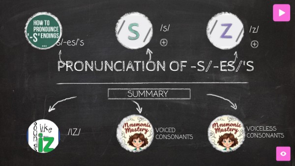 The final s in regular plural nouns, verbs in third person singular and possessive ´s can be pronounced in three different ways: /ɪz/ /s/ /z/. The pronunciation depends on the last sound of the word before adding the s.