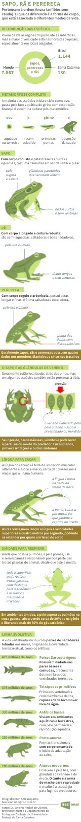 Pertencem à ordem Anura (anfíbios sem cauda). O que os diferencia é a forma do corpo, que está associada a diferentes modos de vida.