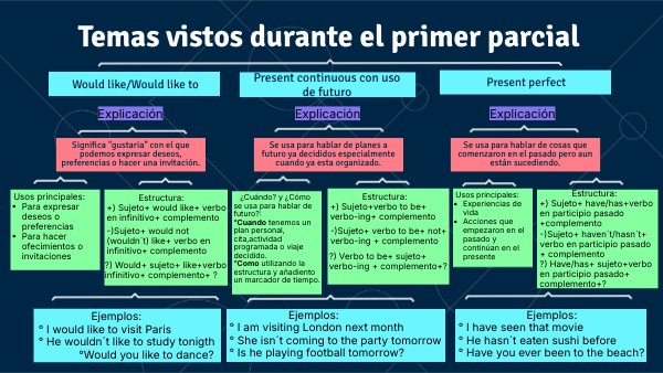 Ejemplos: ° I would like to visit Paris ° He wouldn´t like to study tonigth °Would you like to dance?