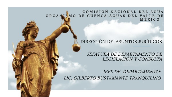 CONSULTAS VARIAS En el ejercicio cotidiano de las funciones administrativas y técnicas del Organismo de Cuenca Aguas del Valle de México y de las diversas áreas que integran la Comisión Nacional del Agua, surgen con frecuencia interrogantes jurídicas relacionadas con la interpretación, aplicación y observancia de los procedimientos normativos que rigen su actuación. Con el objetivo de garantizar certeza y seguridad jurídica en cada decisión, dichas consultas son canalizadas al Departamento de Legislación y Consulta, instancia especializada encargada de analizar los casos planteados y emitir criterios u opiniones jurídicas debidamente fundamentadas.