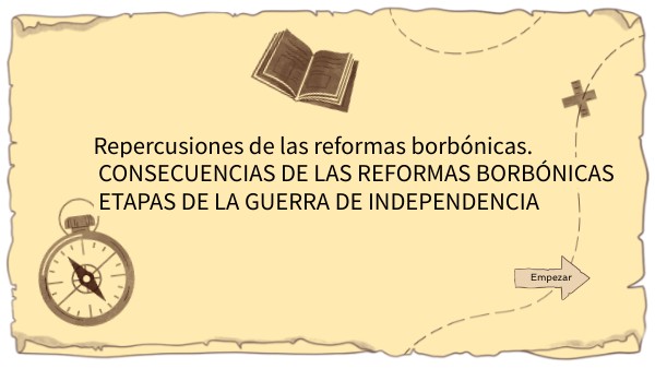 Reformas borbónicas Las reformas borbónicas produjeron repercusiones profundas de tipo económico, politico y administrativo en la Nueva España, creando condiciones que estimularon el descontento y favorecieron el movimiento de independencia; las causas internas incluyen conflictos sociales, problemas económicos e insurrecciones, mientras que las extermas comprenden influencias como la Ilustración, independencia de colonias y la invasión napoleónica, todo lo que derivo en las distintas etapas de la guerra independentista