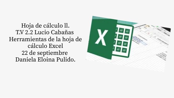 Hoja de cálculo ll. T.V 2.2 Lucio Cabañas Herramientas de la hoja de cálculo Excel 22 de septiembre Daniela Eloina Pulido.