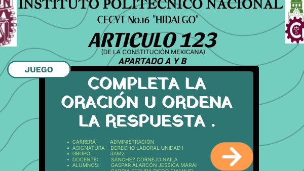 ¡Un paso más para aprender del Articulo 123 y sus apartados! Gracias por jugar. Sigue desafiando tus conocimientos.....