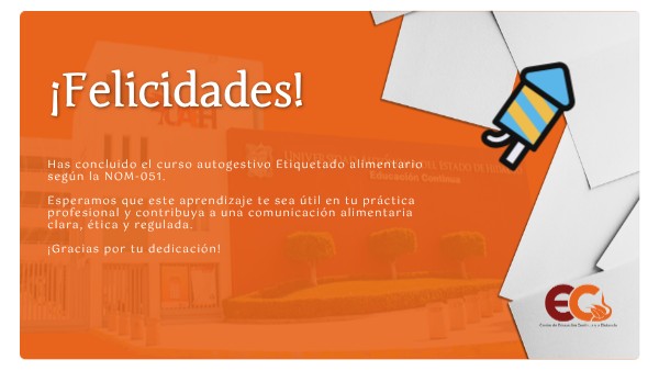 ¡Excelente logro! Has concluido la última unidad de este curso autogestivo. Con ello, cuentas con una visión integral del diseño, validación y comercialización de alimentos innovadores, lo que fortalece tu perfil profesional y tu capacidad de responder a los retos del sector alimentario. Te invitamos a aplicar lo aprendido en tus propios proyectos y a seguir explorando nuevas oportunidades de innovación. ¡El cierre de este curso es solo el inicio de tus futuras propuestas creativas!