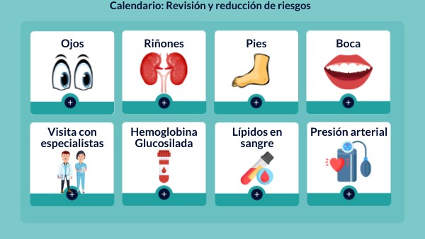 Realizar la prueba de laboratorio "hemoglobina glicosilada" al menos 2 veces por año.