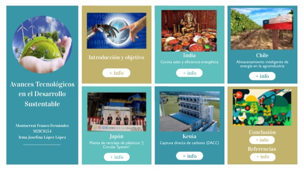 ObjetivoDar a conocer ejemplos recientes de innovaciones tecnológicas aplicadas al desarrollo sustentable en distintos países del mundo, destacando su impacto social y ambiental.