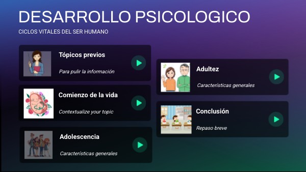 Las personas van formando su vida a medida que van creciendo y evolucionando.Nunca dejan de aprender ni de experimentar cambios. Cada etapa forja un camino y un obstáculo para las personas, pero esto mismo ayuda a encontrar la madurez.