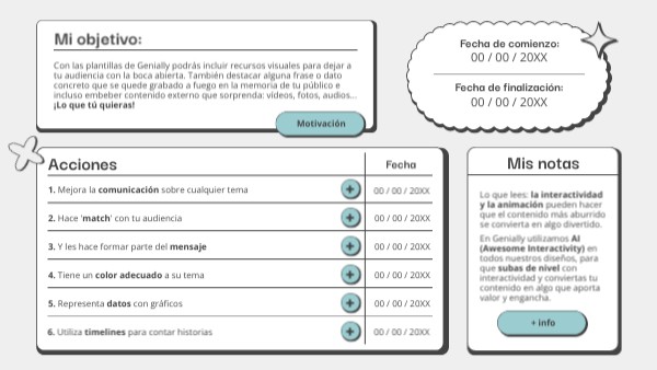 ¿Necesitas más motivos para usar contenidos dinámicos en clase? Bien: el 90% de la información que asimilamos nos llega a través de la vista y, además, retenemos un 42% más de información cuando el contenido se mueve. Lo que lees: la interactividad y la animación pueden hacer que el contenido más aburrido se convierta en algo divertido. En Genially, además creamos nuestros diseños para que faciliten la comprensión y el aprendizaje, para que subas de nivel con interactividad y conviertas tu contenido en algo que aporta valor y engancha.