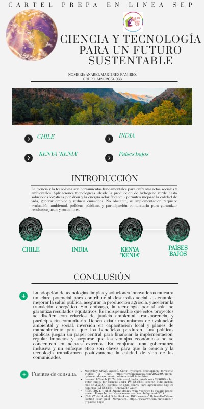 La ciencia y la tecnología son herramientas fundamentales para enfrentar retos sociales y ambientales. Aplicaciones tecnológicas -desde la producción de hidrógeno verde hasta soluciones logísticas por dron y la energía solar flotante - permiten mejorar la calidad de vida, generar empleo y reducir emisiones. No obstante, su implementación requiere evaluación ambiental, políticas públicas, y participación comunitaria para garantizar resultados justos y sostenibles.