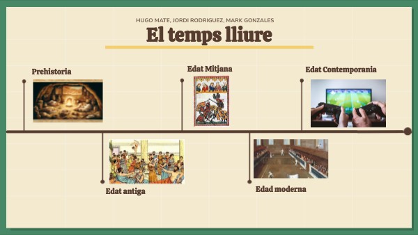 No existia una separació clara entre "treball" i "temps lliure". La vida era una lluita contínua per la supervivència (amb moments de descans i sociabilitat). -Activitats que nosaltres consideraríem "lúdiques" eren part integral de la vida social i ritua. -Històries al voltant del foc -Fabricar i adornar eines i estris -Fer música amb instruments rudimentaris -Danses rituals