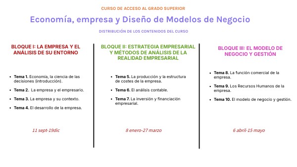 DISTRIBUCIÓN DE LOS Contenidos del curso