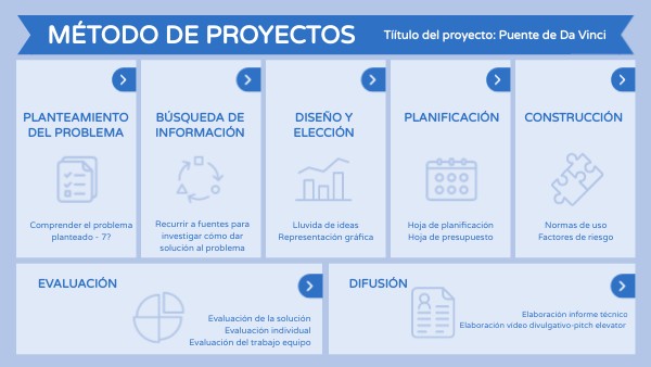 Nos han pedido hacer un puente, así que con palos y gomas haremos el puente de Da Vinci.