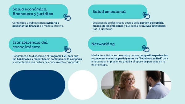 Sesiones de profesionales acerca de la gestión del cambio, manejo de las emociones y búsqueda de nuevas actividades tras la jubilación.