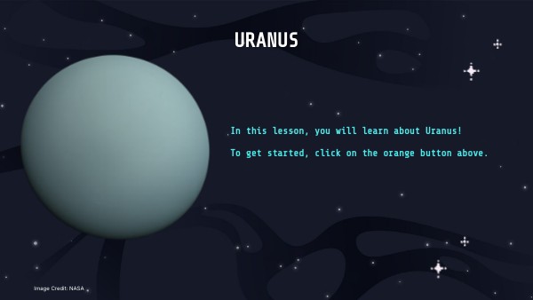 In this lesson, you will learn about Uranus! To get started, click on the orange button above.
