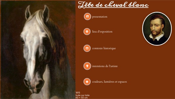 Le blanc est dominant. Les zones d’ombre sont rendues avec des gris bleutés ou bruns très doux, accentuant les contours des muscles et des veines.Les yeux sont souvent plus foncés (brun ou noir), créant un point focal expressif. La lumière accentue la tridimensionnalité, donnant au cheval une présence presque sculpturale. La lumière contribue également à l’intensité dramatique : elle souligne la nervosité du cheval, la tension dans les yeux et la crispation des naseaux. Le cadrage serré et l’absence de contexte spatial situent le spectateur très près du sujet, comme dans une observation anatomique directe ou un portrait vivant. L’espace autour du cheval est volontairement restreint, créant un effet dramatique et intime : on ressent la tension et l’énergie du cheval sans distraction.