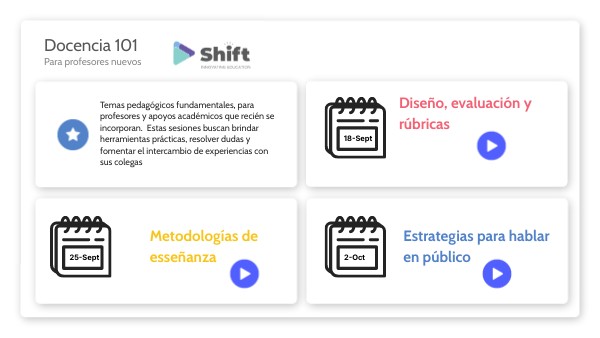 Temas pedagógicos fundamentales, para profesores y apoyos académicos que recién se incorporan. Estas sesiones buscan brindar herramientas prácticas, resolver dudas y fomentar el intercambio de experiencias con sus colegas