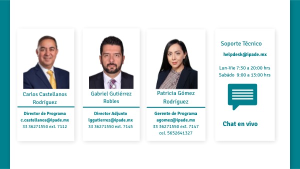 Gerente de Programaagomez@ipade.mx 33 36271550 ext. 7147 cel. 5652641327