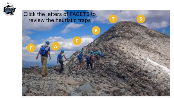 The perception that there is a rare (scarce) opportunity that may not come again. The scarcity of the opportunity may not decrease a person’s awareness of hazards, but it does elevate their perception of the benefits of taking the risk. Interestingly, this heuristic can be driven not only by changing weather conditions but also by an outdoor program’s administrative elements, such as having a coveted permit to do something on a certain day or paying to summit a peak on a certain day, regardless of. the conditions.