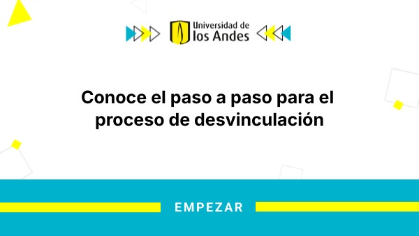 Asegurarse de quedar a paz y salvo con las siguientes unidades: Sistema de Bibliotecas Activos fijos: Coordinar con su Jefe inmediato la devolución de los elementos de trabajo, si requiere información sobre los equipos que tiene a su cargo por favor escriba al correo electrónico moviacti@uniandes.edu.co.