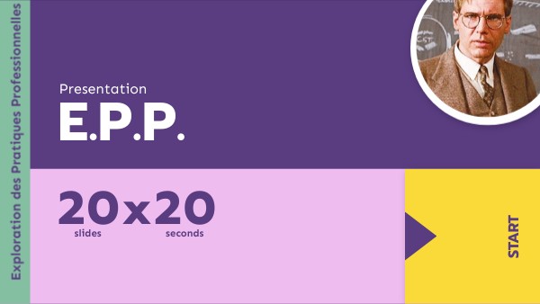 méthode utilisée pour rythmer et encadrer une prestation : 20 diapos x 20 secondes = 6 minutes et 40 secondes chrono.
