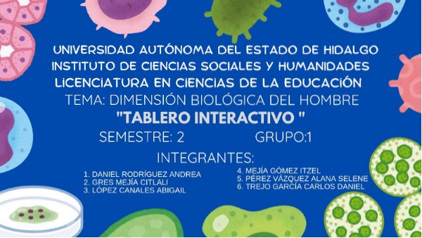 Dentro del tema de genética se encuentran algunas definiciones de partes fundamentales del cuerpo humano y los sistemas que lo componen. Además, se integra la ingeniería genética, una rama de la biotecnología y que se encarga de modificar el ADN, entre otros datos interesantes de esta disciplina. También, hay un espacio dentro del tablero, donde se encuentra la relación de la biología y la educación, como influye el sistema nervioso en la formación educativa. Y por último, hay 2 juegos interactivos que sirven para reforzar la información que se encuentra en el tablero y poder comprenderla mejor.Creemos firmemente que este es un tema muy importante e interesante, que nos sirve mucho conocer a nosotros como futuros profesionales de la educación, el comprender que la dimensión biológica del hombre influye directamente en todos los procesos educativos y forma parte de nuestra vida.