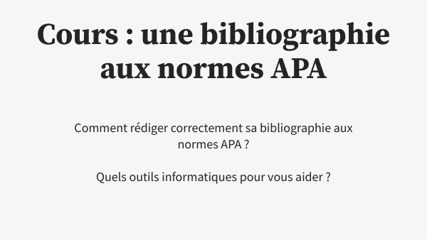 Comment rédiger correctement sa bibliographie aux normes APA ?Quels outils informatiques pour vous aider ?