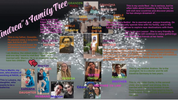 I am Andrea, the oldest sister. I love the beach and one day I want to visit Bora Bora. I am married with Marlon, He is an engineer, and we have two children: