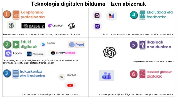 Ikasleen gaitasun digitalak (DigComp 5 esparruak) garatzeko tresnak, etabar.