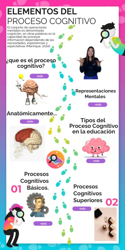 Los procesos cognitivos son operaciones realizadas por el cerebro con la finalidad de adquirir, procesar, almacenar y recuperar información. Por ejemplo: la interpretación mental de lo que se intenta comprender para ser partícipes de un entorno, generalmente se busca identificar y organizar patrones que utiliza esa sociedad a la que se quiere ser miembro (Manrique, 2020).