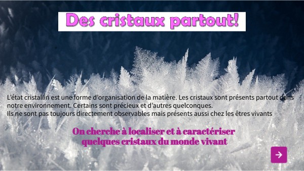 On cherche à localiser et à caractériser quelques cristaux du monde vivant