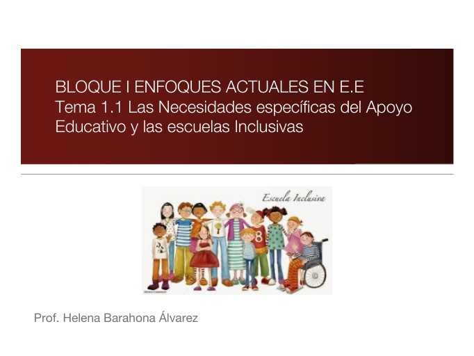 BLOQUE I ENFOQUES ACTUALES EN E.ETema 1.1 Las Necesidades específicas del Apoyo Educativo y las escuelas Inclusivas