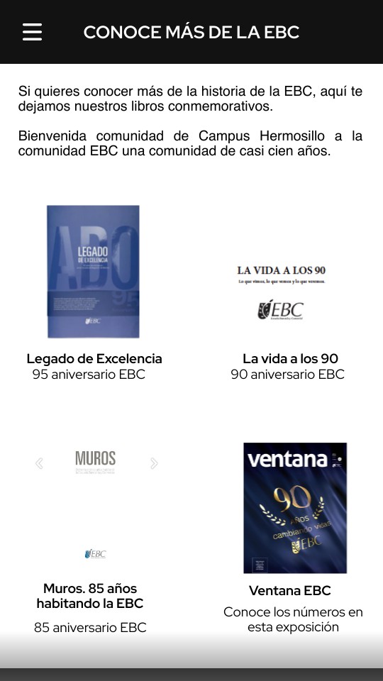 Si quieres conocer más de la historia de la EBC, aquí te dejamos nuestros libros conmemorativos. Bienvenida comunidad de Campus Hermosillo a la comunidad EBC una comunidad de casi cien años.