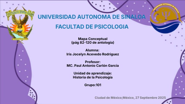 Mapa Conceptual(pág 82-120 de antología) Alumna: Iris Jocelyn Acevedo Rodriguez Profesor: MC. Paul Antonio Carlón García Unidad de aprendizaje: Historia de la Psicología Grupo:101