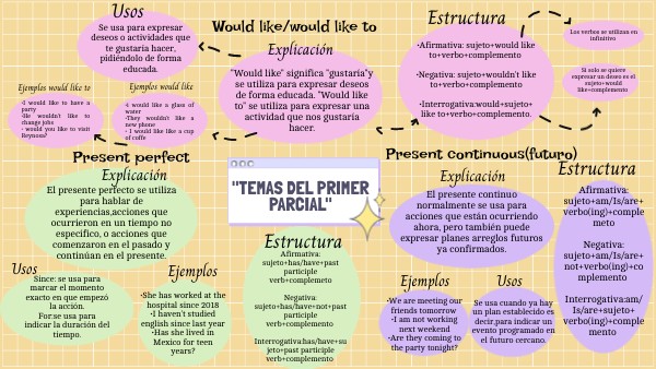 •Afirmativa: sujeto+would like to+verbo+complemento •Negativa: sujeto+wouldn't like to+verbo+complemento •Interrogativa:would+sujeto+ like to+verbo+complemento.
