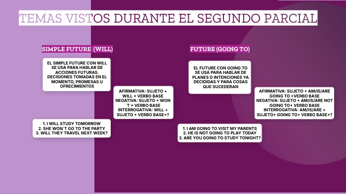 AFIRMATIVA: SUJETO + AM/IS/ARE GOING TO +VERBO BASENEGATIVA: SUJETO + AM/IS/ARE NOT GOING TO+ VERBO BASE INTERROGATIVA: AM/IS/ARE + SUJETO+ GOING TO+ VERBO BASE+?