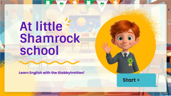 Welcome to Little Shamrock school, in Ireland! Listen! There's a song on the next page!