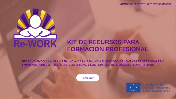 El coworking y los espacios de trabajo colaborativos (CWS) ofrecen este enfoque, brindando no solo entornos físicos, sino también nuevos modelos de emprendimiento, aprendizaje entre pares e innovación social. Para responder a estos desafíos, la asociación RE-WORK ha desarrollado un Kit de Recursos diseñado para fortalecer las competencias de los formadores y apoyar el desarrollo profesional de los jóvenes. El kit está compuesto por seis módulos interconectados, estructurados en torno a los siguientes temas: - Introducción al coworking y a los CWS: conceptos, beneficios, retos y oportunidades