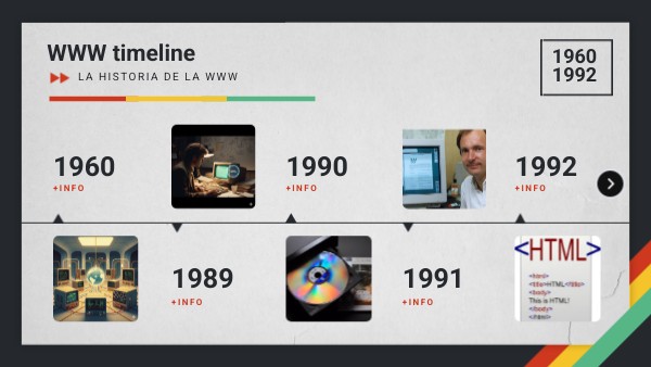 Tim Berners-Lee, un científico del CERN (Suiza), propone un sistema de gestión de información descentralizado y global basado en hipertexto. Su objetivo era que los científicos pudieran compartir documentos e investigaciones de manera sencilla a través de la red existente (Internet). Este concepto fue la chispa que encendió la web tal como la conocemos.
