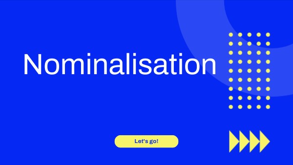 - Nominalisation helps achieve a higher degree of abstraction and technicality.