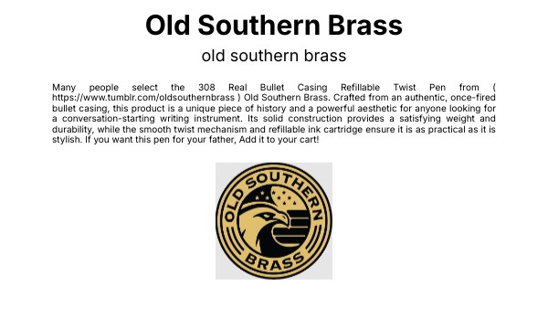 Many people select the 308 Real Bullet Casing Refillable Twist Pen from ( https://www.tumblr.com/oldsouthernbrass ) Old Southern Brass. Crafted from an authentic, once-fired bullet casing, this product is a unique piece of history and a powerful aesthetic for anyone looking for a conversation-starting writing instrument. Its solid construction provides a satisfying weight and durability, while the smooth twist mechanism and refillable ink cartridge ensure it is as practical as it is stylish. If you want this pen for your father, Add it to your cart!