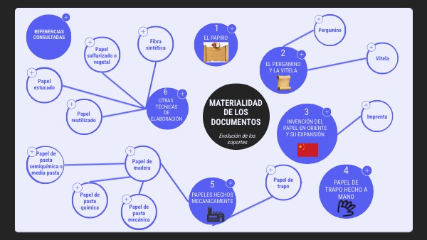 En la historia del ser humano se han utilizado diferentes materiales para la elaboración de documentos, los cuales se componen por lo menos un elemento sustentante o soporte sobre el cual se registran elementos gráficos o contenido. Por lo tanto es necesario conocer sus materialidades, procesos de fabricación, usos así como sus cambios y evolución, para comprender sus características de composión debido a su intima relación con su permamencia, conservación y principales deterioros.