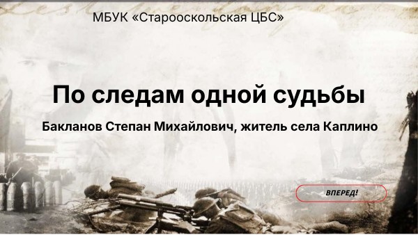 Фронт. Бои. Ранение. Плен под Минском... В приказе Главного управления кадров от 26 июня 1941 года появляется запись об исключении из списков офицеров Красной Армии как пропавших без вести. Среди них — 17-м в списке — имя командира пулеметного взвода лейтенанта Степана Михайловича Бакланова.