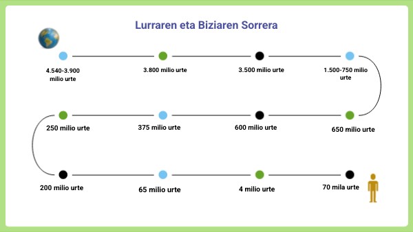 Lurra grabitatearen eraginez sortu zen, arroka beroek elkar jo zutenean. Teia izeneko planeta txiki batek Lurraren kontra talka egin zuen, eta horren ondorioz Ilargia sortu zen. Hasierako egunek 3-6 ordu iraun zuten, eta meteoritoek ura ekarri zuten, putzuak sortuz. Ilargiak mega tormenta bat eragin zuen, eta lehenengo mareak Lurra astindu zuten. Prozesu hauek guztiak gure planetaren egitura eta baldintzak definitzen lagundu zuten.