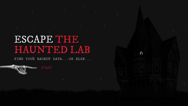 The hallway behind you fades into darkness as you step into the main lab. Suddenly, a gust of wind slams the door shut behind you. Somewhere in this haunted lab, your data may be hidden. Where do you go first?