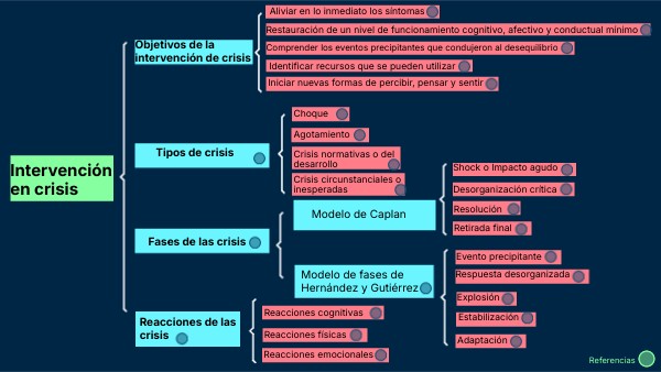 Guerrero, B. (s. f.). L9. Elementos de las crisis. Universidad Virtual del Estado de Guanajuato. Guerrero, B. (s. f.). L8. Intervención en crisis. Universidad Virtual del Estado de Guanajuato. Guerrero, B. (s. f.). Reacciones de las crisis. Universidad Virtual del Estado de Guanajuato. Hernández, I., y Gutiérrez, L. (2014). Manual básico de primeros auxilios psicológicos. Universidad de Guadalajara. Recuperado de https://www.cucs.udg.mx/sites/default/files/adjuntos/manual_primeros_auxilios_psicologicos_2017.pdf
