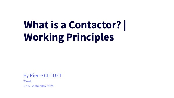 MAIN CONCEPTS:Definition and Function : A contactor is a device used to make and break electrical circuits, primarily for controlling high voltage motors safely. It acts as an intermediary between a PLC and high voltage equipment to prevent damage to the PLC from electrical surges.