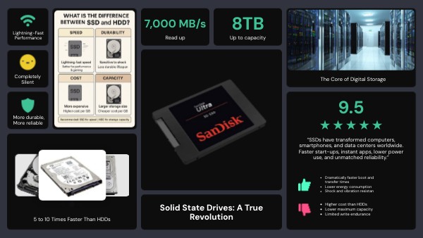 “SSDs have transformed computers, smartphones, and data centers worldwide. Faster start-ups, instant apps, lower power use, and unmatched reliability.”