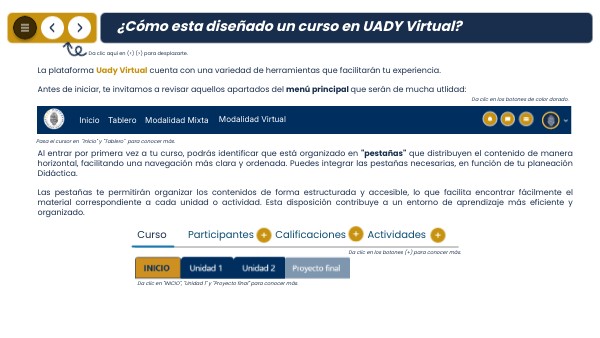 La plataforma Uady Virtual cuenta con una variedad de herramientas que facilitarán tu experiencia. Antes de iniciar, te invitamos a revisar aquellos apartados del menú principal que serán de mucha utlidad: