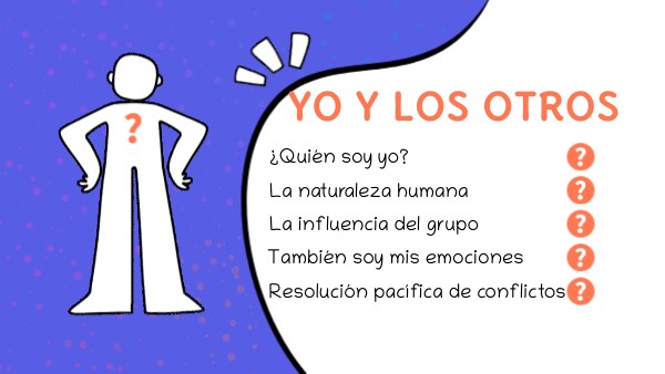 1. Vamos a reflexionar sobre la pregunta "¿quién soy yo?". Para ello vamos a responder a las siguientes cuestiones de la mejor manera que podamos (hay que tener en cuenta que se trata de cuestiones filosócias complejas) Usa tu imaginación y creatividad.a) ¿Quién soy yo? b) ¿Cómo he llegado a ser quien soy? c) ¿Cómo puedo llegar a ser? d) ¿Cómo me imagino en el futuro? e) ¿Crees que las personas pueden cambiar fácilmente su forma de ser? 2. ¿Cuáles son tus hábitos de conducta? Escribe 5 hábitos que te faciliten la vida y 5 que te la hagan más difícil. 3. ¿Cómo crees que has adquirido estos hábitos? ¿Quién crees que te ha influido? (la familia, los amigos, los profesores, internet...)