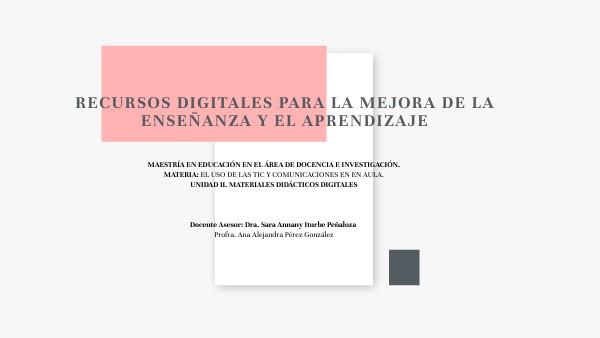 MAESTRÍA EN EDUCACIÓN EN EL ÁREA DE DOCENCIA E INVESTIGACIÓN. MATERIA: EL USO DE LAS TIC Y COMUNICACIONES EN EN AULA. UNIDAD II. MATERIALES DIDÁCTICOS DIGITALES Docente Asesor: Dra. Sara Annany Iturbe Peñaloza Profra. Ana Alejandra Pérez González